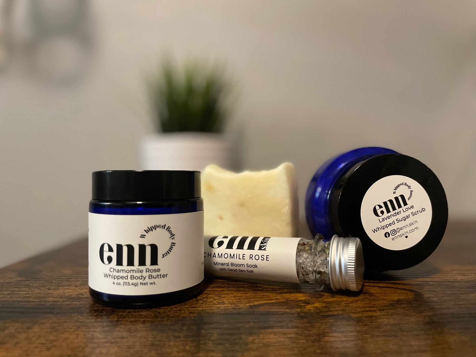 Prefer to create your own ritual? Select any scent from our lineup to personalize your Slow Sunday Set. Perfect for those who know exactly what they love. Email noel@ennskin.com with your preferred scent for your Whipped Body Butter, Whipped Sugar Scrub, Mineral Bath Soak, and Handmade Soap Bar from the choices above.